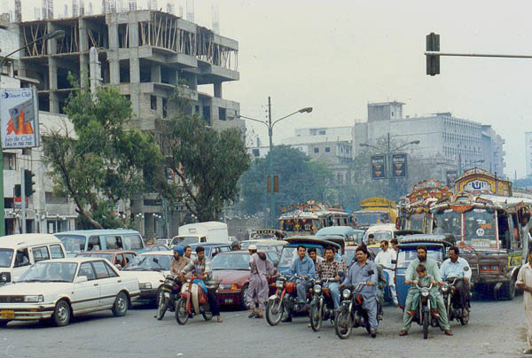 Waiting and raring to go with the amber light on Bunder Road- Karachi