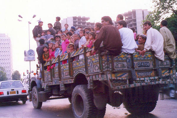 A picnic crowd on the 'raiti bajri' truck - Karachi